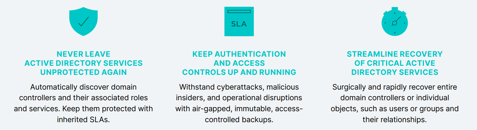 Mặc dù AD là một ứng dụng phân tán có tính dự phòng cao để đảm bảo khả năng sẵn sàng, việc khôi phục các hệ thống này (do lỗi hoặc ransomware) bằng phương pháp gốc thường mất thời gian và phức tạp. Trong khi đó, nhiều giải pháp đơn lẻ giả định rằng môi trường sản xuất vẫn còn hoạt động — điều không phải lúc nào cũng đúng.