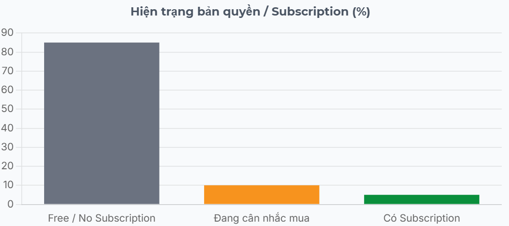 - Tín hiệu chuyển dịch sang bản quyền: Dù phiên bản miễn phí vẫn chiếm ưu thế, đã có khoảng một phần ba người dùng bắt đầu sử dụng hoặc cân nhắc mua các gói Subscription để nhận được sự hỗ trợ chính thức.